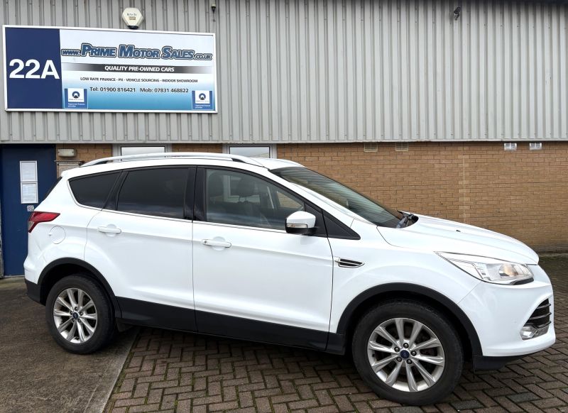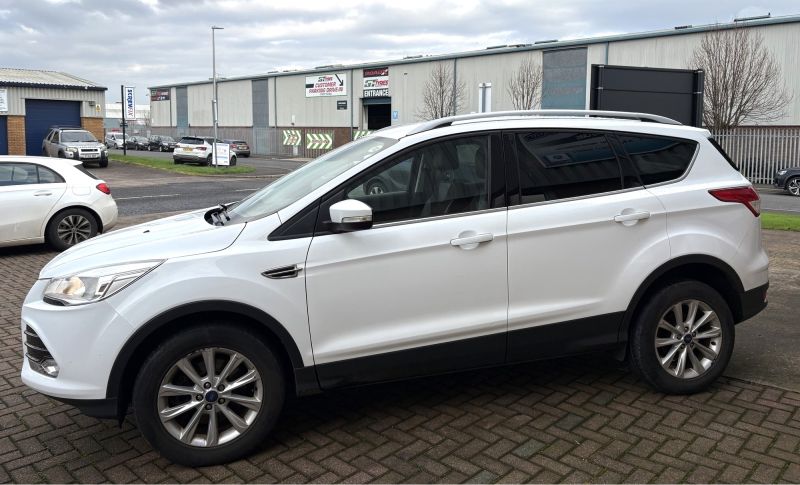 A STUNNING FORD KUGA TITANIUM 2.0 TDCi (150ps) 2WD ESTATE/MPV 5DR MODEL,EURO 6 CAR IN FROZEN WHITE, EQUIPPED WITH 17 inch ALLOYS,F/FOGS,DAY RUNNING LIGHTS, HEATED QUICKCLEAR SCREEN,HALF LEATHER/CLOTH SEATS, R/CL+ALARM, KEYLESS START, EWx4,ABS,TRACTION CONTROL,PAS,CRUISE CONTROL,CD+FM/DAB RADIO +PHONE BLUETOOTH/MUSIC STREAMING + FORD SYNC SYSTEM, TOUCH SCREEN MONITOR,USB CHARGING PORTS,HEADLIGHT/RAIN SENSORS,TYRE PRESSURE MONITOR,MULTI-AIRBAG SYSTEM KNEE/SIDE/CURTAIN, ISOFIX ANCHOR POINTS +MORE,A GREAT HIGH SPEC EXAMPLE, SPACIOUS ,ECONOMICAL AND GREAT CONDITION IN A GREAT PAINT COLOUR, ONLY 79000 mls,PSH,2 x MAIN DEALER ENTRIES AND COMES WITH A FREE FULL SERVICE WHEN SOLD,GREAT LOOKING CAR AND VERY ECONOMICAL UP TO 65+ MPG (extra urban) AND IS A EURO 6 CAR AND ULEZ COMPLIANT, HAVE IT ALL WITH THIS MPV/ESTATE,GREAT CAR,GREAT LOOKS,GREAT PAINT COLOUR, EXCELLENT CHOICE FOR A SAFE,SPACIOUS FAMILY VEHICLE!!!